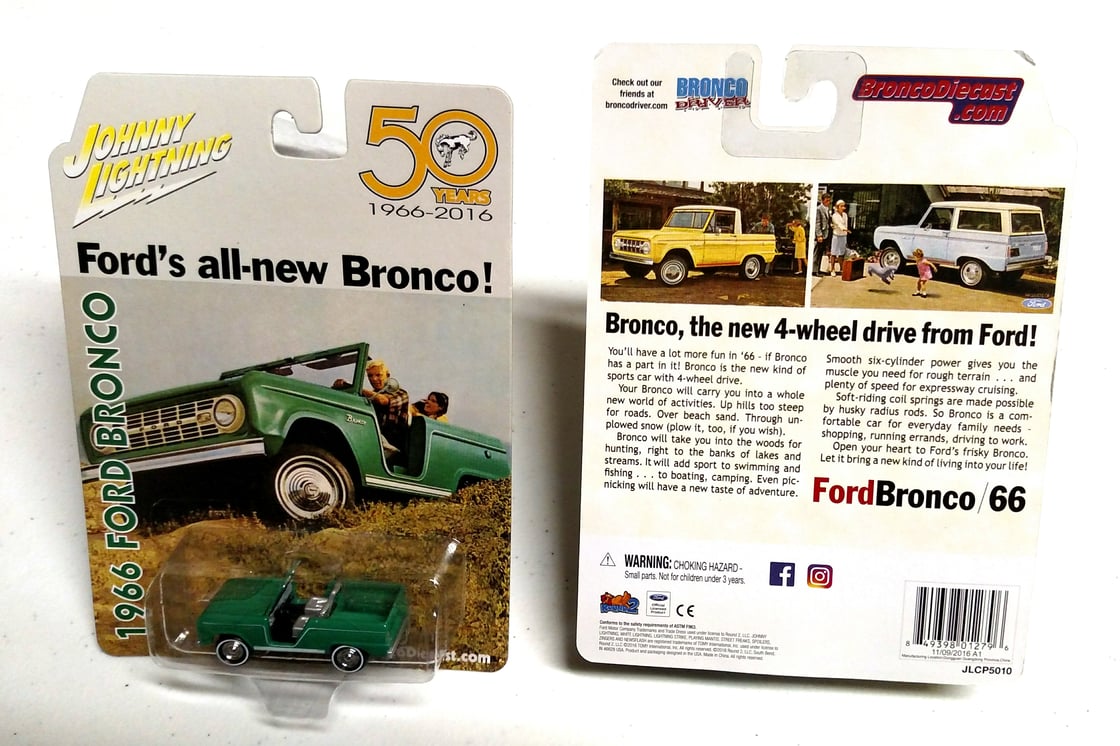 My partners and I at BroncoDiecast.com had a Bronco 40th Anniversary Johnny Lightning diecast made in 2006, so we stepped it up for the 50th and had two different ones made for the Bronco 50th Anniversary which due to production delays were not released until 2017. These are the only two new Johnny Lightning Bronco diecasts produced from the original tooling in the last 10 years.